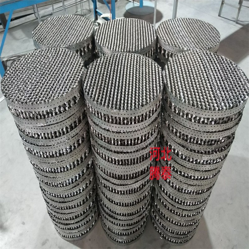 產(chǎn)品主要結(jié)構(gòu)及特點(diǎn):不銹鋼孔板波紋規(guī)整植料的主要特點(diǎn)是直接將不銹鋼金屬板經(jīng)沖切拉他成較小尺寸的菱形網(wǎng)孔板,而后經(jīng)沖壓成波紋片,進(jìn)而組裝成填料盤。官綜合了金屬絲網(wǎng)波紋填料和金屬板波紋填料的件能優(yōu)勢(shì),是一種既具有較高效率,又有較低價(jià)格的新型填料。由于比表面積大,它效率較高,規(guī)則的菱形網(wǎng)易為液膜覆蓋,凹凸不平的表面強(qiáng)化了液膜湍動(dòng)、混合及表面更新。