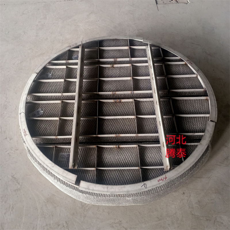 絲網(wǎng)除沫器主要是由絲網(wǎng)、絲網(wǎng)格柵組成絲網(wǎng)塊和固定絲網(wǎng)塊的支承裝置構(gòu)成,絲網(wǎng)為各種材質(zhì)的氣液過濾網(wǎng),氣液過濾網(wǎng)是由金屬絲或非金屬絲組成。氣液過濾網(wǎng)的非金屬絲由多股非金屬纖維捻制而成,亦可為單股非金屬絲。該絲網(wǎng)除沫器不但能濾除懸浮于氣流中的較大液沫,而且能濾除較小和微小液沫,廣泛應(yīng)用于化工、石油、塔器制造、壓力容器等行業(yè)中的氣液分離裝置中。