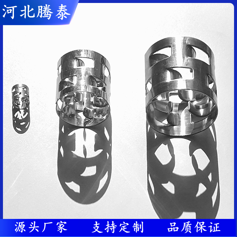 鮑爾環(huán)填料是一種新型填料,是針對(duì)拉西環(huán)的一些主要缺點(diǎn)加以改進(jìn)而出現(xiàn)的,是在普通拉西環(huán)的壁上開(kāi)八層長(zhǎng)方形小窗,小窗葉片在環(huán)中心相搭,上下面層窗位置相互交搭而成。它與拉西環(huán)填料的主要區(qū)別是在于在側(cè)壁上開(kāi)有長(zhǎng)方形窗孔,窗孔的窗葉彎入環(huán)心,由于環(huán)壁開(kāi)孔使得氣、液體的分布性能較拉西環(huán)得到較大的改善,尤其是環(huán)的內(nèi)表面積能夠得以充分利用。